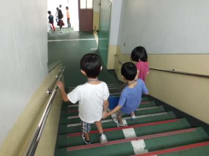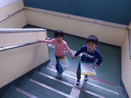 8日(木)の1・2時間目に学校探検をしました。みんな朝から「楽しみ〜。」「早く学校探検に行きたい。」とそわそわしていました。縦割りグループで,仲良く教室を出発し,様々な教室をまわりました。