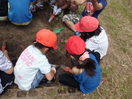 今日は2年生の花壇の草ぬきをしました。しばらく利用していなかった花壇は雑草だらけになっていました。みんなでスコップを使って一生懸命草ぬきをしました。ぬいてもぬいてもまだまだ草だらけの花壇です。