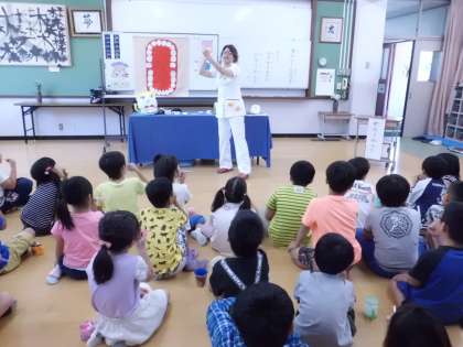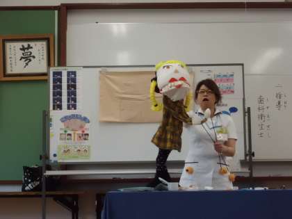 歯磨きをしないとどんな大変なことになるのか教えていただいた後、正しい歯磨きの仕方を練習しました。