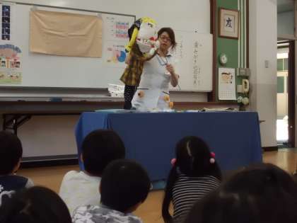 今日は,歯科衛生士さんに来ていただき,正しい歯磨きの仕方を教えていただきました。