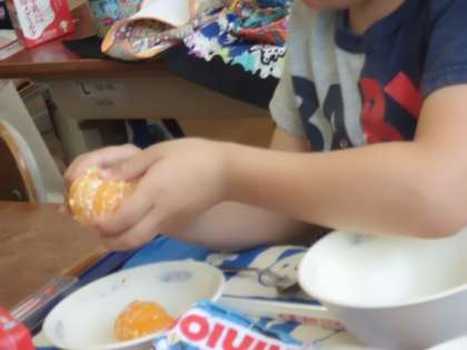 冷たくて,皮をめくるのに悪戦苦闘していましたが,食べると