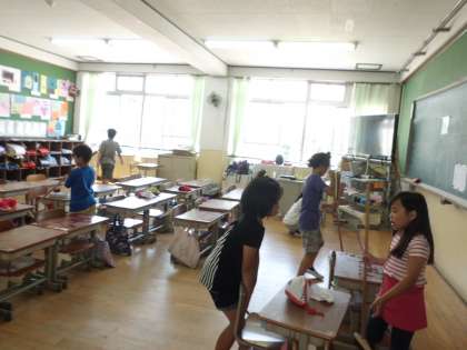1年生だけでは掃除ができないところも,今日は,お兄さん・お姉さんの力で