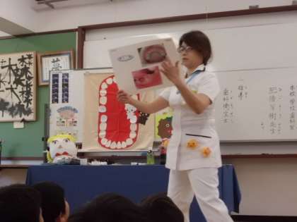 14日(水)に,歯磨き指導がありました。歯がない動物は,鳥やカメ,両生類であること。みんなには歯が20本あって,その歯を大切にしてほしいこと。歯磨きする時は左上から磨くこと。など様々な事を教えて頂きました。最後にはみんなで一緒にブラッシングしました。正しい磨き方をして,いつまでも健康な歯でいて欲しいですね。