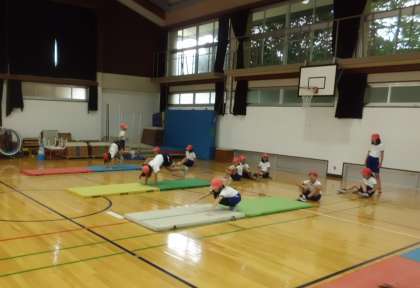 体育では,マット運動の学習が始まりました。新しい技に挑戦したり,今できる技の連続技に取り組んだりしています。