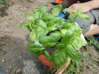 くすのき畑に、「トマトの虫よけになるよ。」と教えていただいたバジルを植えました。たわわに実ったトマトが無事に収穫の時を迎えられますように☆