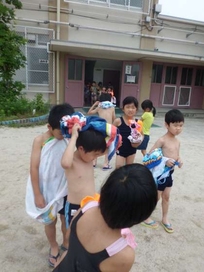 低水位でのみずあそびでしたが,初めての大きなプールにテンションが高まりました。