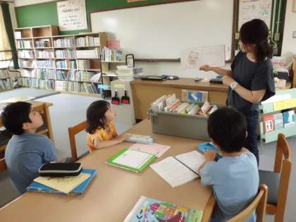 さっそく図書館の図司先生に「しろくまちゃんのほっとけーき」の本を読んでいただきました。