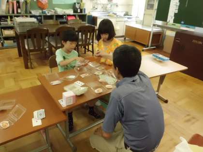 算数の時間に「パン屋さん」になってお客さんからの注文を聞き、パンをパックに入れて渡しました。今日は教頭先生もお客さんになってくださり、大はりきりの子どもたちでした。
