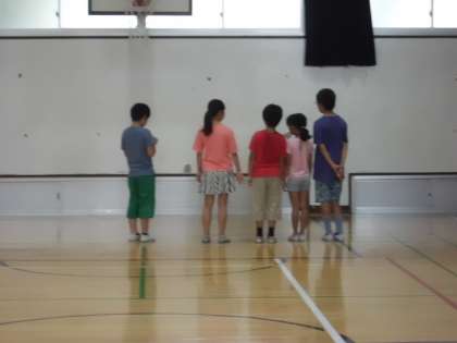 今日はグループのお友だちと一緒にキャンプファイヤーの時の出し物練習!