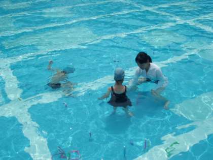 低学年児童は水遊び、高学年児童はクロールの練習を頑張りました。