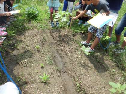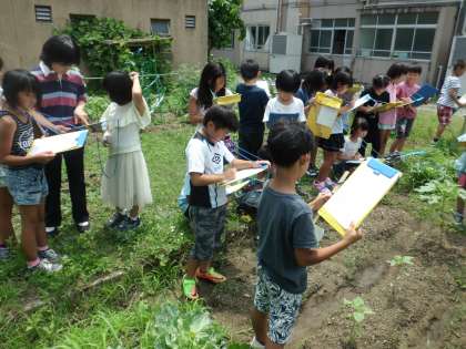 学級園で育てているヒマワリとホウセンカが育ってきました。その様子を観察シートに記録しました。観察のポイントは,理科支援員の川田悦子先生にも教えてもらいました。
