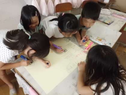 「プレゼント係」「ダンス・歌係」「お祝い係」に分かれて活動しました。どんな活動をするか相談し,係のポスターを完成させました。どんどん積極的に活動して欲しいです。