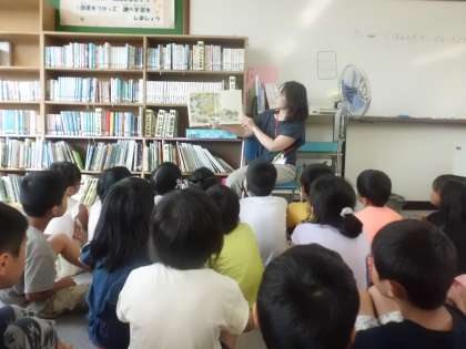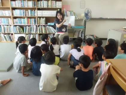 今日の読書タイムは,「にほんの むかしばなしを よもう。」というねらいで,図司先生に『はなさかじいさん』を読んでもらいました。