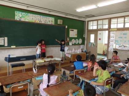 朝の会のものまね(というよりジェスチャーゲーム)を今日も率先して何人もの子どもたちがしてくれました。今日は「ドラエモン」「木」「すいかわり」のジェスチャーゲームをしてくれました。明日はどんなものまねをしてくれるのでしょうか。楽しみにしています。