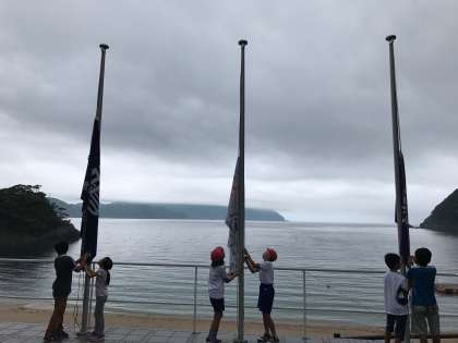 朝から天気が心配ですが、つどいの広場で朝のつどいが始まりました。