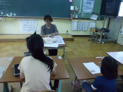 養護教諭の先生に「おへそってなあに」「なかよしマットで感じてみよう人との距離」というテーマで授業をして頂きました。