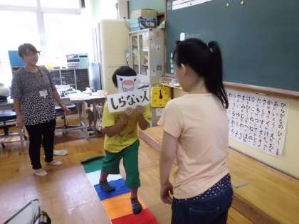 「なかよしマット」では、親しい友だちや知らない人が近付いてきたときの気持ちを考えました。