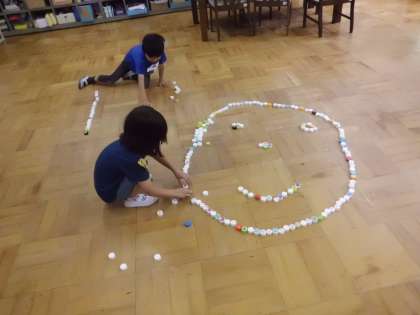 上に積み重ねたり、色の組み合わせを考えたり、お友だちと協力して大きな作品を作ったり・・・