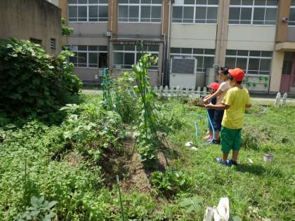 子どもたちは汗だくになりながら一生懸命草抜きをしています。