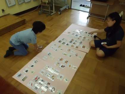 本を使って「食べ物のへんしん」について調べ,同じ仲間に分類し,新聞にまとめました。完成した新聞を眺め,