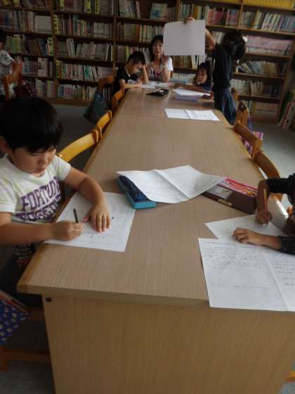 長い文を書くのはまだまだ難しいですが,図司先生が考えてくださった読書感想文メモをもとに,原稿用紙に書いていきます。