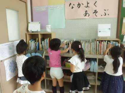あそびがかり・ほんがかり・くばりがかり・かざりがかりの4つの係に分かれて活動しています。