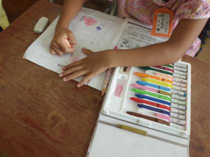 『おばけのてんぷら』の話を聞いて,お気に入りの場面の絵とお勧めポイントをかきました。