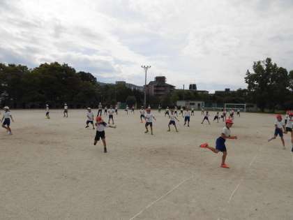 3・4年生の団体演技「エイサー」の運動場での練習を開始しました。今まで動きを覚えるために体育館でしていましたが,外に出て自分のポジションや動きをあわせることを確認しながら練習しています。