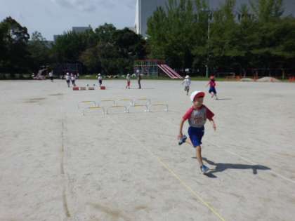 体育では運動会の練習を毎日しています。今日は初めて「障害物走」と「玉入れ」の練習をしました。