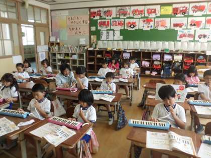 何人かの子は,休み時間にも鍵盤ハーモニカを用意して,練習していました。