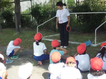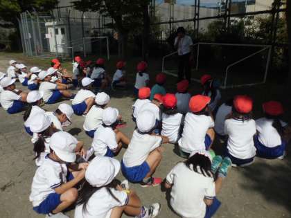 今日は,スペシャルゲスト 校長先生が来てくださり,リレーの仕方を教えてくださいました。1年生にとっては,トラックを使って走るのは初めての経験です。また,体育で学習したリレーと少し違うので,張り切っています。