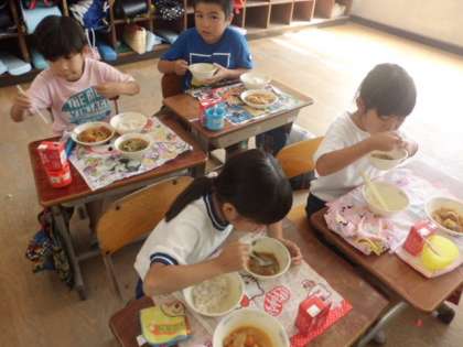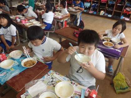 21(木)の給食はタッカルビ,テンジャンクッでした。初めて出てきた給食でしたが,みんなおいしいと喜んでおかわりしていました。