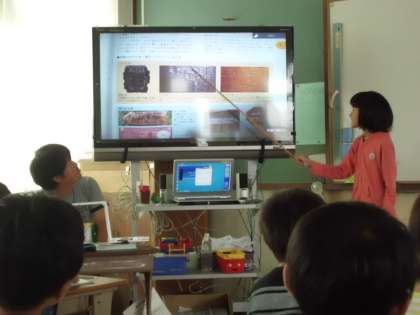 調べたことを発表する時間です。集めた資料を整理して,聞く人によく伝わるように工夫して発表しました。大事なことがつたわるように,絵や写真も用意しました。