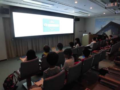次に,京都府の警察の方々の仕事についての映像を見たり,交通管制センターの様子を見ながら説明してもらったりしました。京都府では1日で平均750件〜800件もの110番通報があることを教えてもらい,子どもたちは驚いていました。