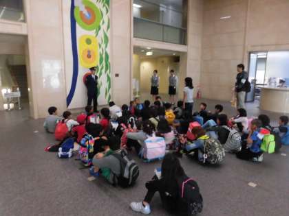 最後に,信号機の実物を見せてもらったり,警察官の持ち物を見せてもらったり,質問に答えてもらったりしました。敬礼の仕方も教えてもらって,最後にみんなで敬礼しました。