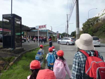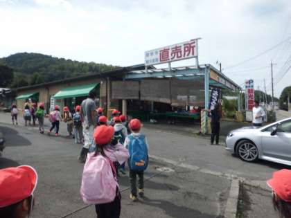 学校を週発して歩いて歩いてようやく,勧修寺農園に到着しました。「やった〜」と歓声が上がりました。