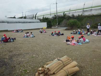 勧修寺農園の方に,芋を学校まで運んでいただくようにお願いし,お弁当を食べました。