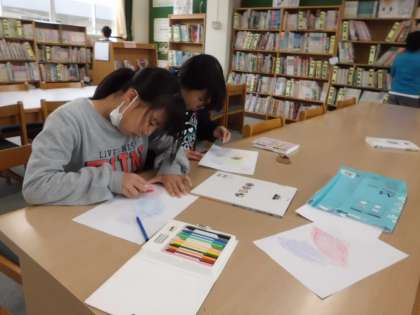 自分の好きな落ち葉を拾って,クーピー持参で図書館へ。落ち葉の上に紙をひき,上からクーピーで上手にこすると…なんてすてきなんでしょう。ついでに何の葉っぱか,調べてみましょう。ひろってこすって!!「落ち葉でアート!」