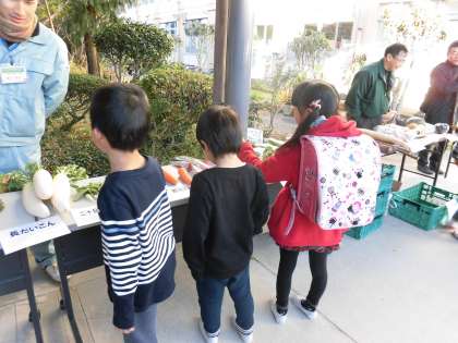 学校に出前板さんが来てくださり,全校児童のために京野菜を展示してくださいました。