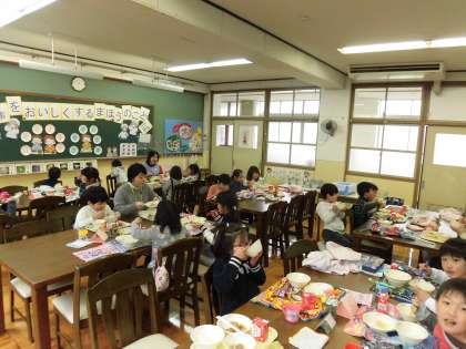 先生や友達との会話を楽しみながら,おいしい給食をいただきました。