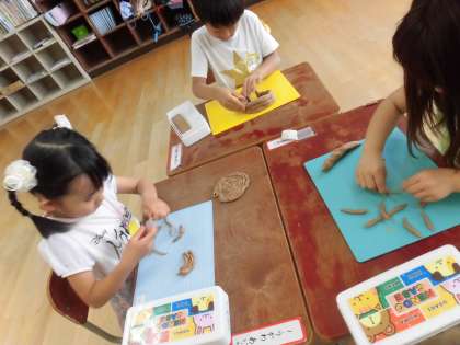 粘土のひもで形を作って楽しみました。