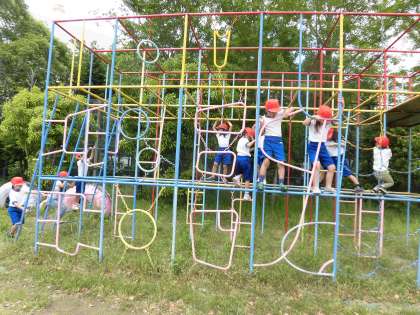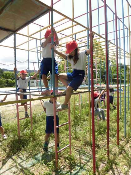 緊張しながらも,リーダーの真似をしながら総合遊具の旅を楽しんでいました。
