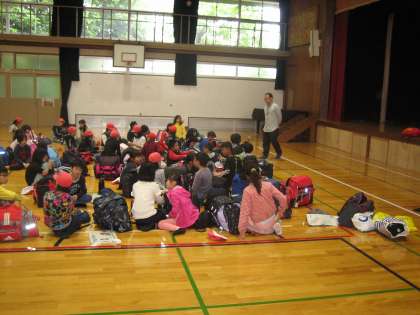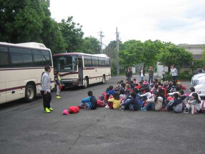 爽やかな天候の下,3泊4日の花背山の家での長期宿泊自然体験が始まります。