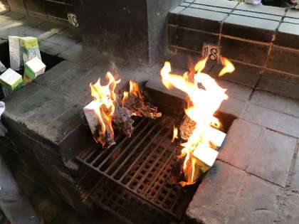 牛乳パックに火をつけるとあっという間にパックドックの完成!