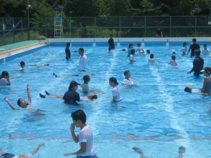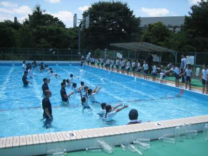 今日は醍醐消防分署と春日野消防分団の方々にお越しいただき,着衣水泳を行いました。