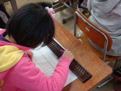 3年生の算数の学習では「そろばん」を学んでいます。