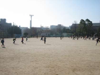 各クラスで寒くても良い天気のもと,元気にタグを使って遊びました。