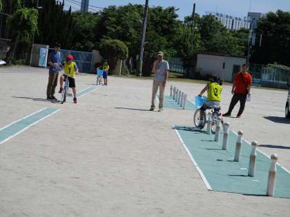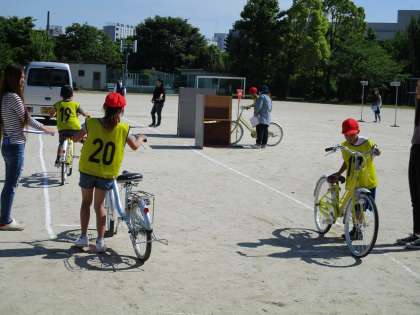 5月22日(水)晴天のもと,小栗栖小学校の4年生と合同で,自転車教室を行いました。