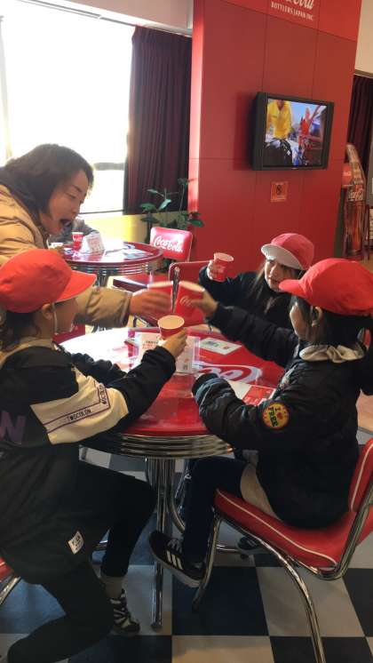 コカ・コーラ京都工場の見学を終え,ただ今試飲中です。