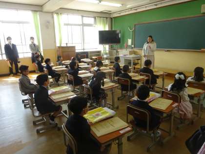 その後,入学式を行いました。新1年生がドキドキしながら式を終え,学級担任の話をしっかりと聞いていました。